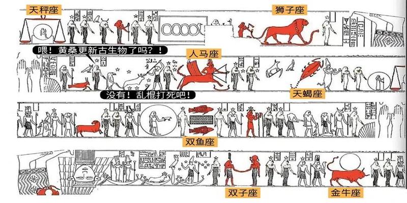 丹特拉神庙长条形星座雕刻红色代表黄道十二宫图像借鉴了古巴比伦星座图像