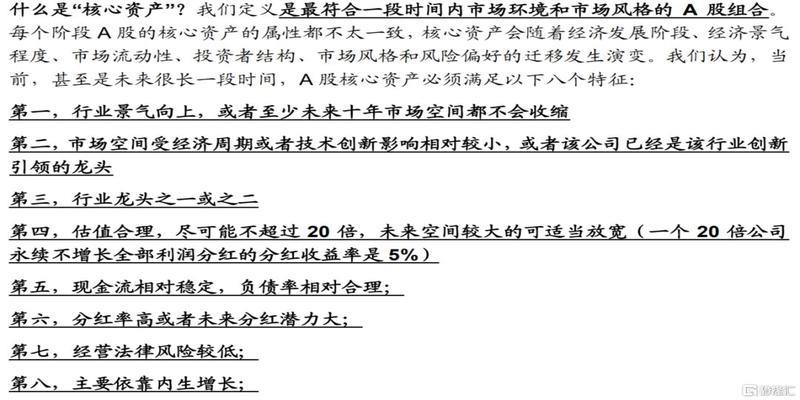 文中对核心资产提出的八大标准引起了一定的关注