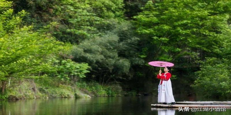 忽听短笛横吹烟波浩淼之中驶来一艘乌篷小船船头站立一名红衣女子风吹红衣起浪映衬的女子如凌波仙子